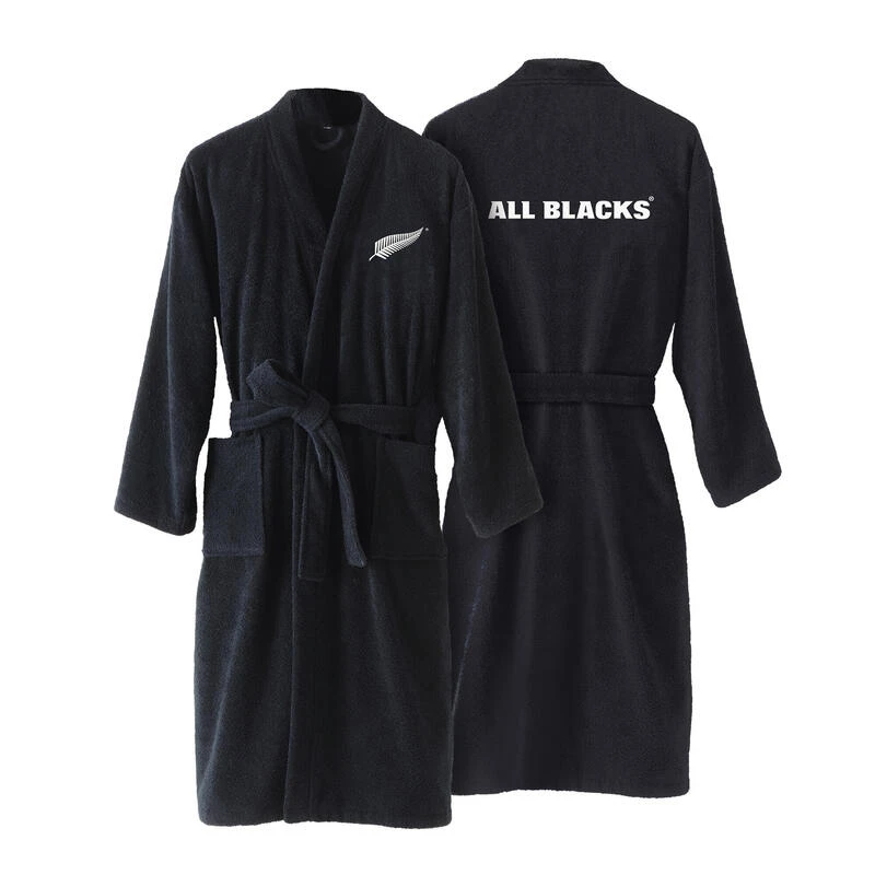 Peignoir à poches et col kimono, logo ALL BLACKS brodé pour les fans de l’équipe de rubgy. Confortable et respirant grâce au coton en micro-bouclette garantissant une absorption parfaite.