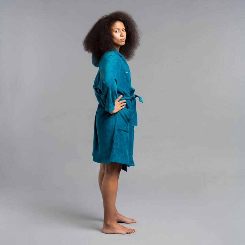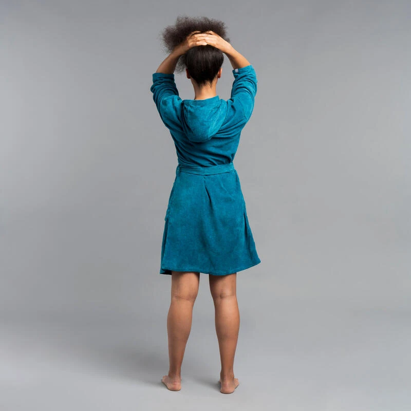 PEIGNOIR DE BAIN FEMME WATER POLO COTON EPAIS BLEU PAON – Image 2